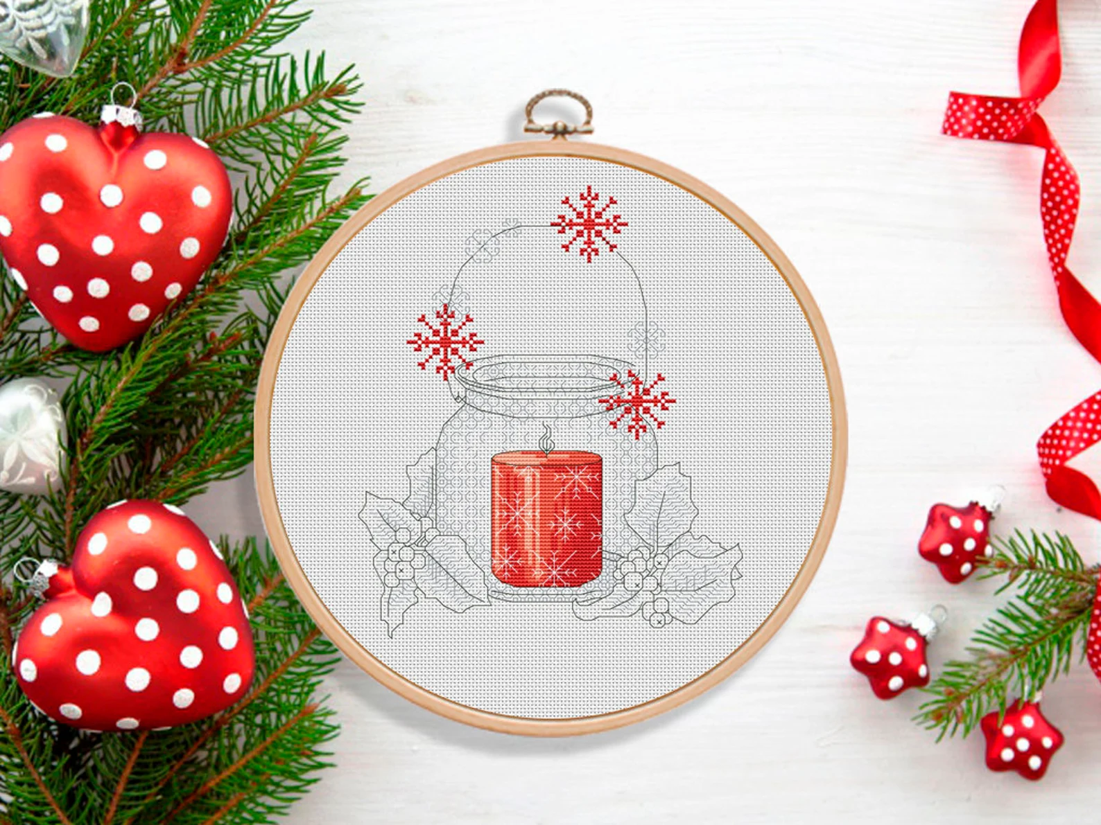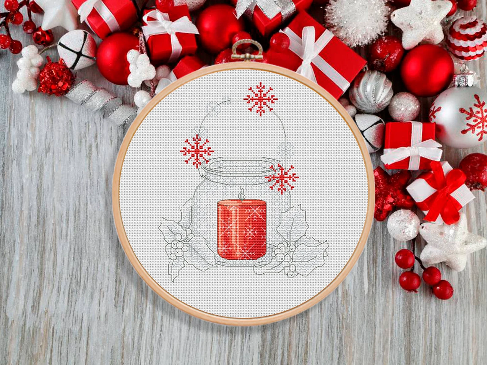 Christmas Candle Jar Cross Stitch Pattern – PDF Instant Download