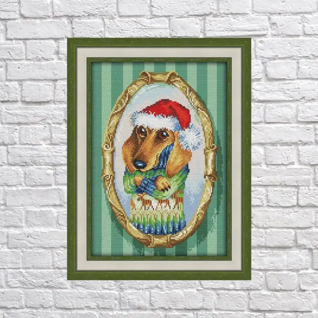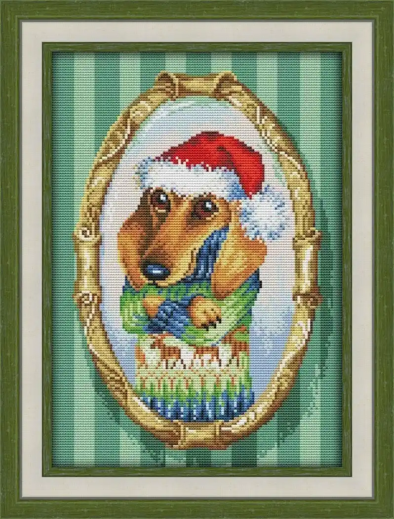 Add a touch of festive warmth to your stitching with this Christmas dachshund design. The pattern features an adorable dachshund in a Santa hat, styled as a vintage holiday portrait. A lovely choice for Christmas decorations, handmade gifts, greeting cards, or a cozy seasonal embroidery collection.
