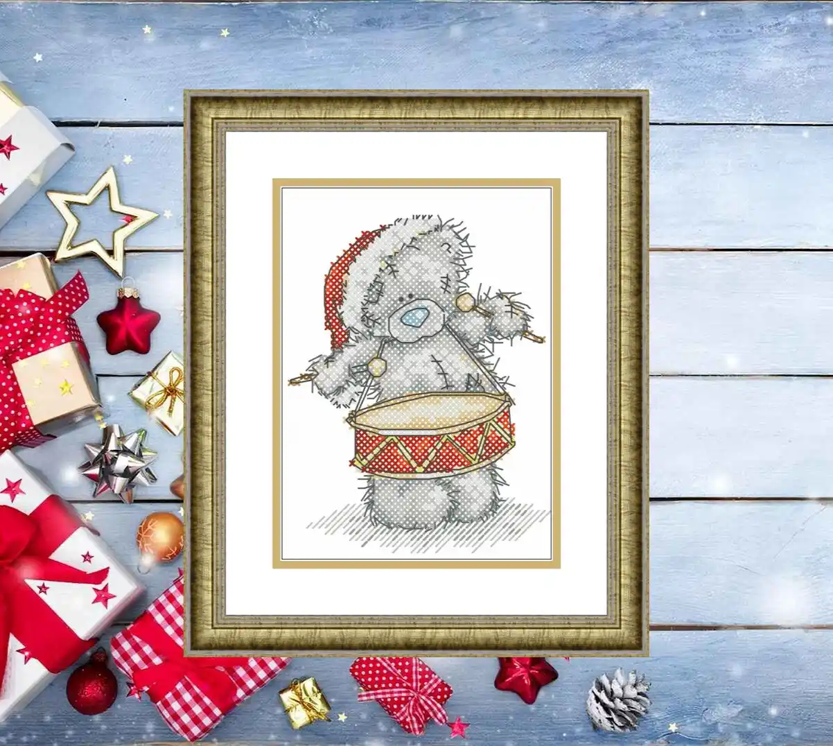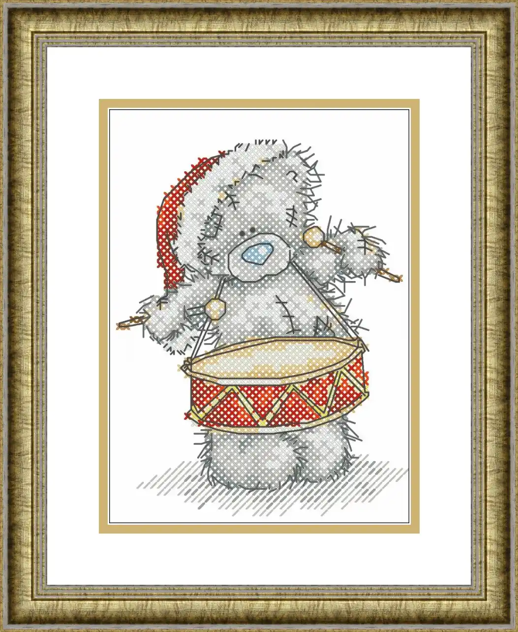 Digital cross-stitch pattern featuring a Christmas teddy