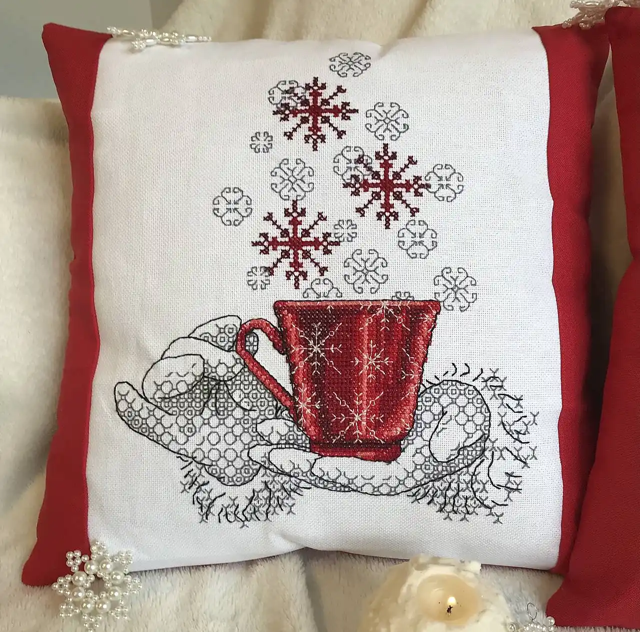 Bring a touch of winter magic into your stitching time with this charming Christmas cross stitch pattern featuring a cozy red mug resting in warm hands, surrounded by delicate falling snowflakes. This design is perfect for holiday décor, handmade gifts, or anyone who loves peaceful winter moments captured in embroidery.
