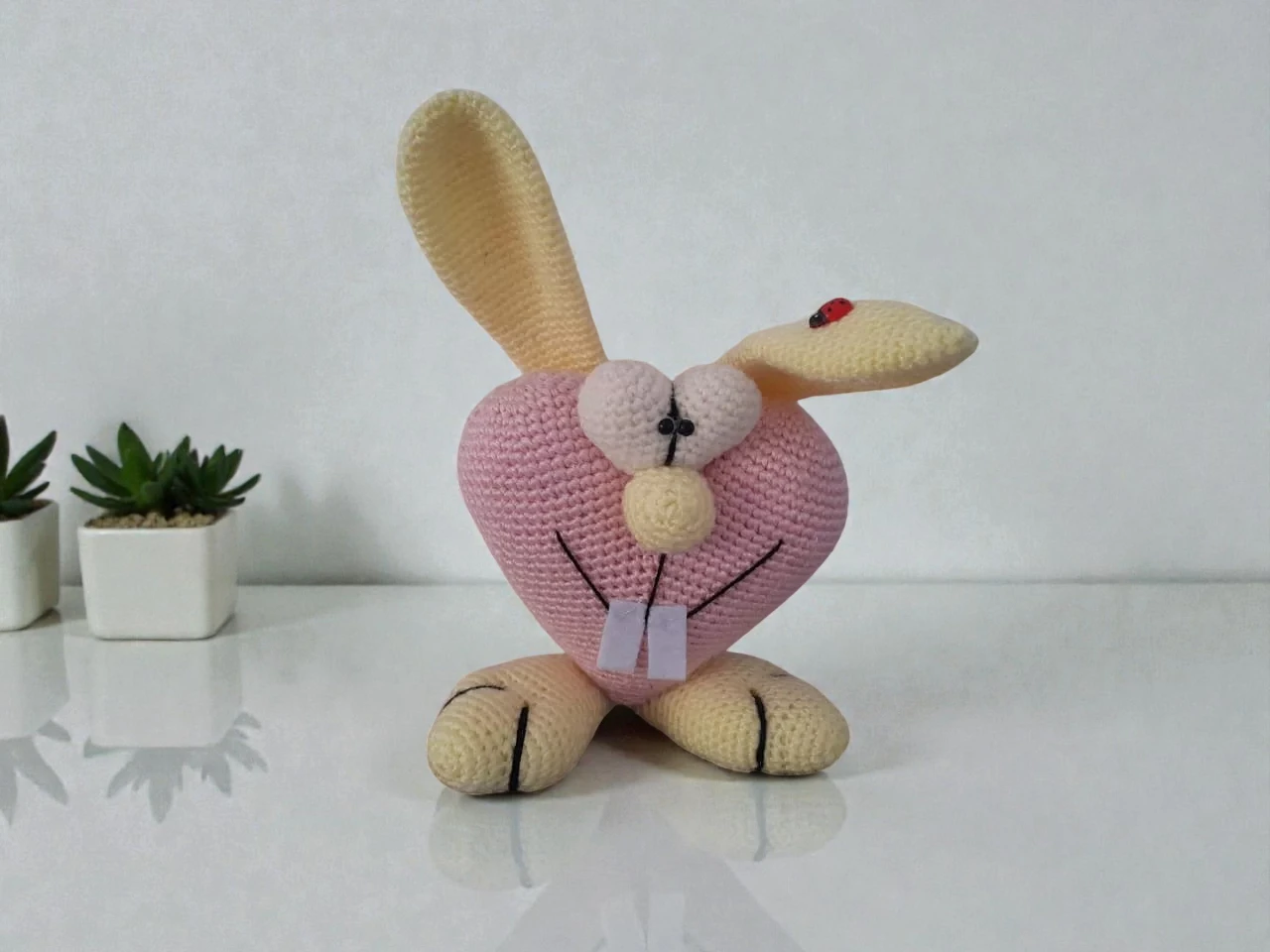 This sweet heart-shaped crochet bunny is a charming handmade keepsake, designed to bring a smile to anyone’s face. With its cozy shape, tiny paws, and a lucky ladybug on the ear, it’s a perfect gift for Valentine’s Day, birthdays, or just because!