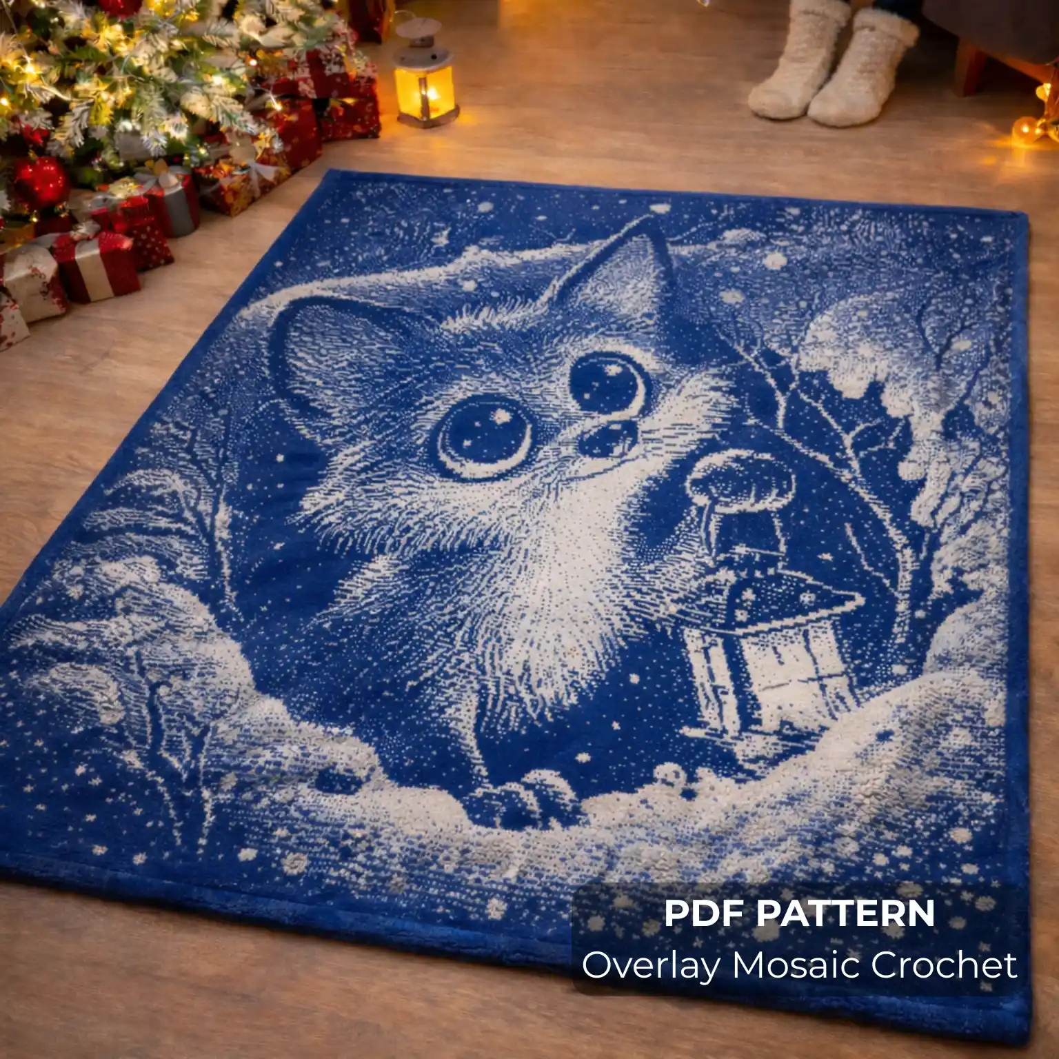 Bring a calm Nordic winter atmosphere to life with yarn using this detailed overlay mosaic crochet fox design.