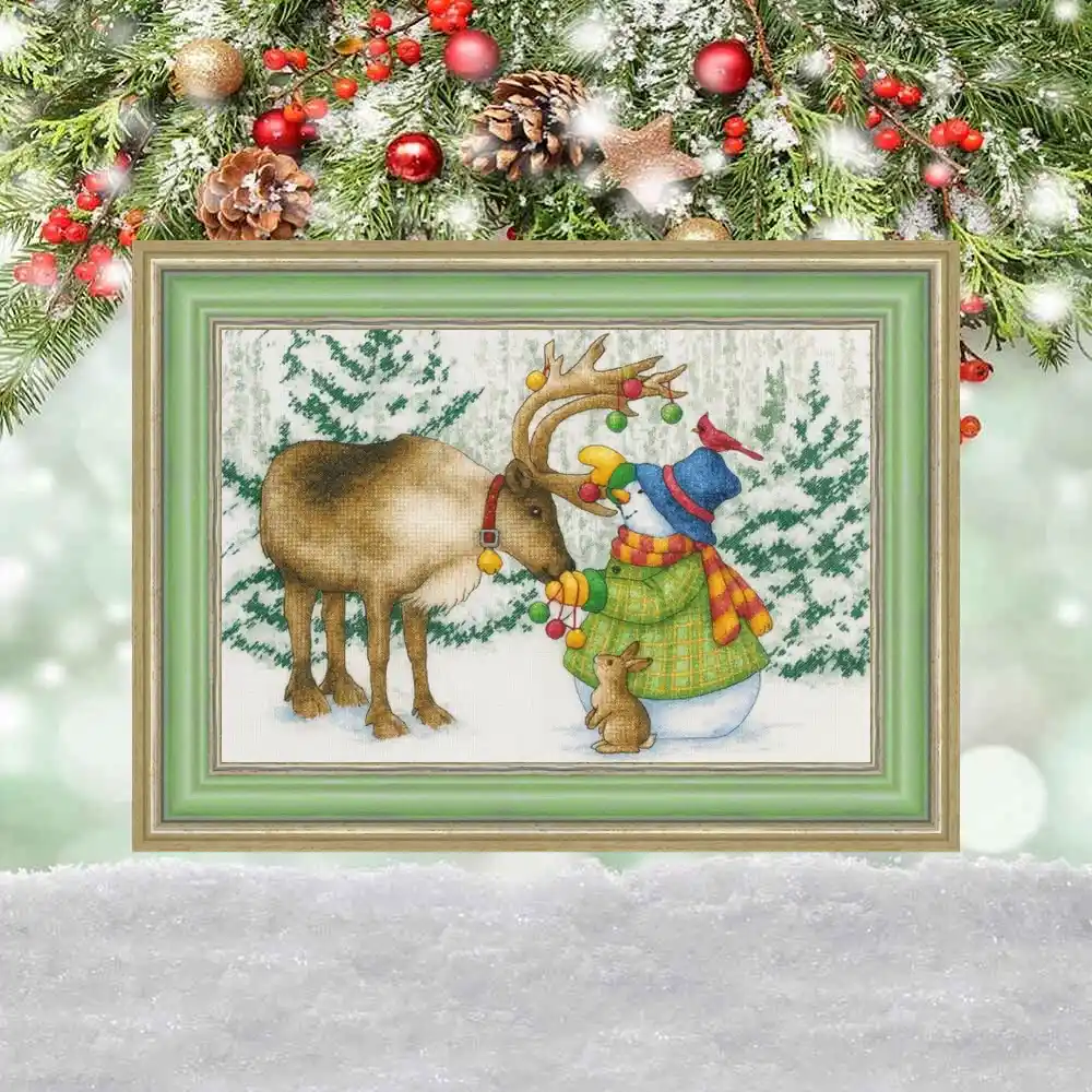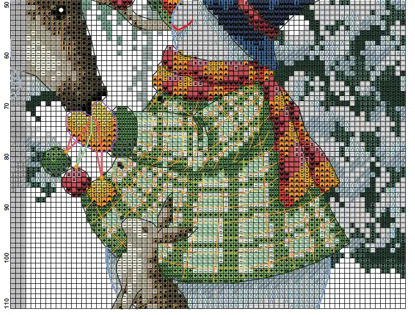 Digital cross-stitch pattern featuring a snowman,