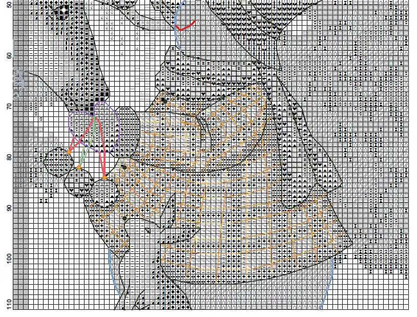 • Number of colors: DMC palette (full + half stitches, knots, backstitch)