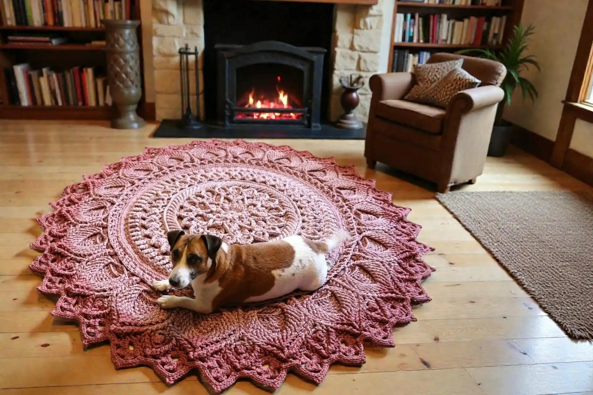 Add a touch of sophistication to your home with this beautifully handcrafted crochet rug. Designed with intricate relief elements, it boasts exceptional density and durability, making it a stunning decorative piece.
