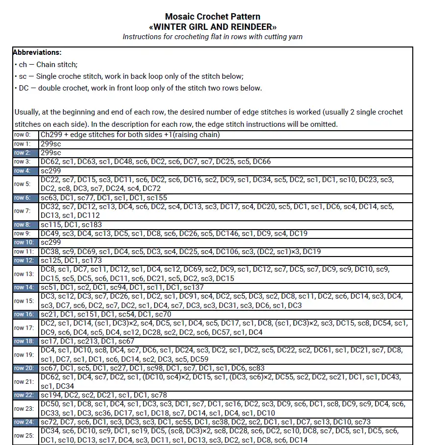 This pattern is ideal for crocheters who enjoy character-driven designs, detailed mosaic charts, and well-balanced contrast. It’s especially suited for blankets and throws, working beautifully in classic winter color palettes such as cream with blue, white with charcoal, or soft neutral tones.